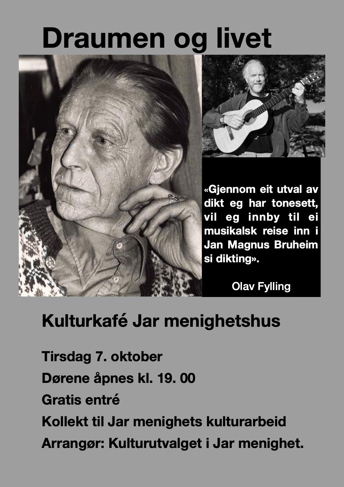 Draumen og livet: Gjennom eit utval av dikt eg har tonesett, vil eg innby til ei musikalsk reise inn i Jan Magnus Bruheim si dikting.Olav Fylling